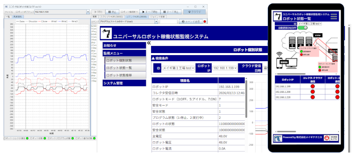 ユニバーサルロボットの稼働を監視し、クラウドを経由してPC/スマホで状況を参照できるシステム