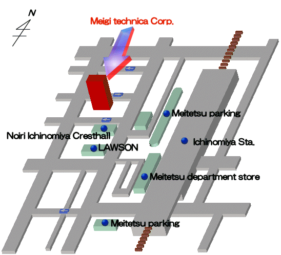 2 minutes walk from Owariichinomiya station (JR line) or Ichinomiya station (Meitetsu line)